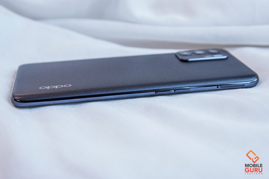 OPPO Reno6 Z 5G มาพร้อมหน้าจอที่สวยงามมากๆเป็นหน้าจอ Punch-Hole AMOLED Screen ขนาด 6.43 นิ้ว ความละเอียด FHD+ 1080 x 2400 pixels (409 ppi) อัตราส่วนหน้าจอ 20:9 รองรับ SGS Eye Care Display ขอบหน้าจอบาง และมีดีไซน์ด้านหลังที่น่าสนใจโดยต่อยอดมาจากรุ่นที่แล้ว สำหรับสีได้รับมารีวิวจะเป็นสีดำ Stellar Black เป็นสีดำที่ดูมีมิติ มีโทนเฉดสีเทาและสีน้ำเงินอยู่ในนั้นด้วย มาพร้อมผิวสัมผัสด้านๆช่วยให้ไม่เป็นคราบสกปรก และรอยนิ้วมือได้ง่ายๆ แต่ยังมีความระยิบระยับเอาไว้ ทำให้ตัวเครื่องดูสวยงามมากๆ แถมรอบนี้ยังทำเป็นผิวด้านที่ระยิบระยับทั่วทั้งด้านหลังเลยครับ รวมไปถึงชุดกล้อง 3 เลนส์อีกด้วย และบริเวณไฟแฟลชยังมีเขียนว่า 5G ด้วยนะครับ ผมประทับใจในดีไซน์ด้านหลังเครื่องของรุ่นนี้มากๆเลยนะ