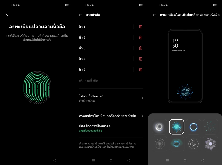 OPPO Reno6 Z 5G มาพร้อม AI Face Access และ Fingerprint ใต้หน้าจอ รองรับสุงสุด 5 ลายนิ้วมือ ความแม่นยำและึวามรวดเร็วทำได้ดีมาก แถมยังมาพร้อมเอฟเฟกต์ที่หลากหลายให้เลือกใช้งาน