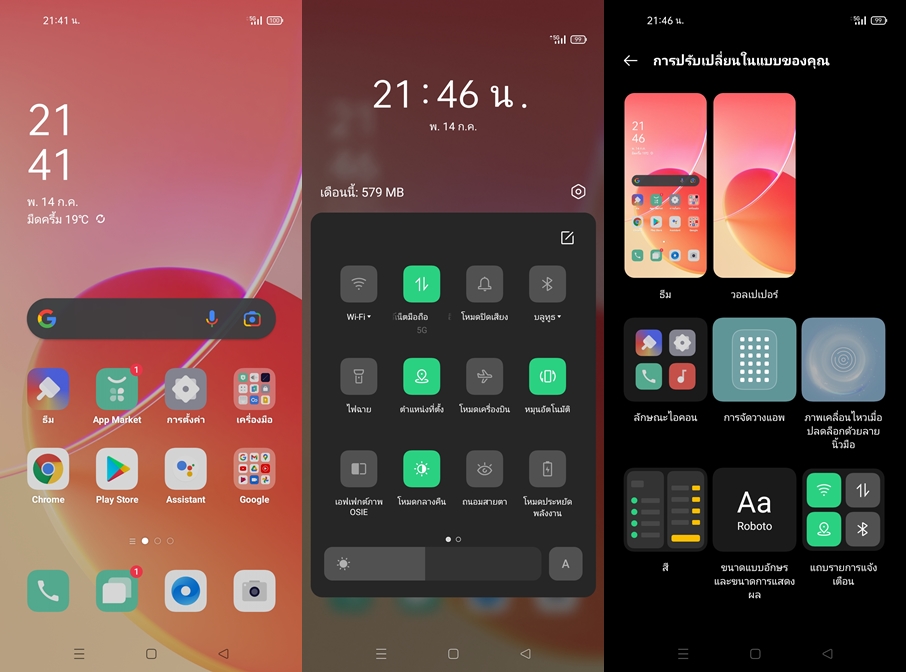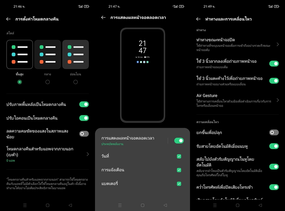 OPPO Reno6 Z 5G ทำงานบน Android 11 ครอบทับด้วย ColorOS 11.1 หน้าตาอินเตอร์เฟสสวยงามและทันสมัย ปรับแต่งได้เยอะ มาพร้อมสเปคที่น่าสนใจ MediaTek Dimensity 800U 5G, GPU Mali-G57 MC3, RAM 8GB (LPDDR4X), ROM 128GB (UFS2.1) รองรับ microSDXC การทำงานรวดเร็ว และลื่นไหลดีมากครับ ฟีเจอร์ต่างๆจัดมาให้ครบไม่ว่าจะเป็น Always-On Display (ปรับแต่งไม่ได้), Dark Mode เวอร์ชั่นใหม่, Smart Gesture แถมยังมี Air Gestures การสั่งงานสมาร์ทโฟนโดยไม่ต้องสัมผัสตัวเครื่อง มาให้ใช้งานกันด้วยนะครับ