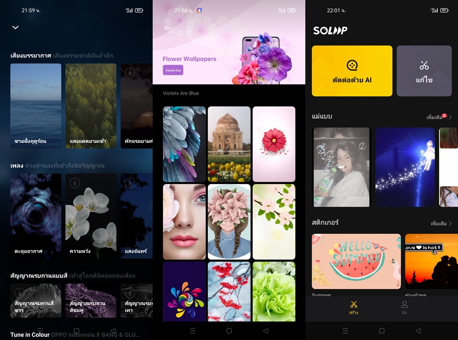 ฟีเจอร์โคลนแอปพลิเคชั่น, App Split-Screen การแบ่งหน้าจอเป็น 2 ส่วน และสามารถแปลภาษาผ่าน Google Lens โดยการจับภาพหน้าจอ และสำหรับคนรัก ASMR แอปพลิเคชั่น O Relax มาพร้อมกับเสียงที่ช่วยให้ผ่อนคลาย และมินิเกมง่ายๆที่สามารถทำให้คลายเครียด เป็นแอปพลิเคชั่นจากออปโป้ที่ไม่ค่อยมีคนใช้งาน แต่โดยส่วนตัวผมชอบมากๆเลยครับ ใครเป็นโรคนอนไม่หลับผมขอแนะนำเลยครับ และสามารถดาวน์โหลดแอปพลิเคชั่นผ่านทางเลือกอย่าง OPPO App Market และดาวน์โหลด Wallpaper, Themes และ Font ผ่าน OPPO Themes ซึ่งมีของฟรีให้โหลดกันอย่างจุใจเลยครับ และสำหรับคนชอบตัดต่อวิดีดอ OPPO ก็มีแอปพลิเคชั่น Soloop มาให้อีกด้วย จะเห็นเลยนะครับว่า ColorOS 11.1 มีความครบเครื่องน่าใช้มากๆ ไม่แพ้รุ่นใหญ่เลย