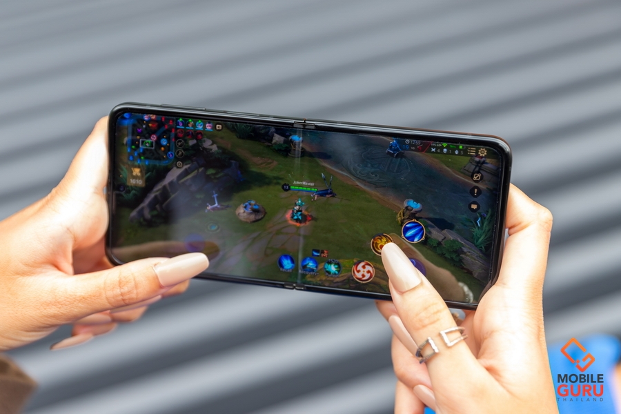 ทดสอบด้วยเกม ROV สามารถเล่นได้อย่างลื่นไหล 60FPS ตั้งแต่ต้นจนจบ และด้วยฟิล์มหน้าจอที่มีความหนาขึ้น ทำให้ไม่รู้สึกยวบยาบเวลาเล่น หน้าจอแข็งแรงเหมาะกับการเล่นเกมมากขึ้นอย่างชัดเจน