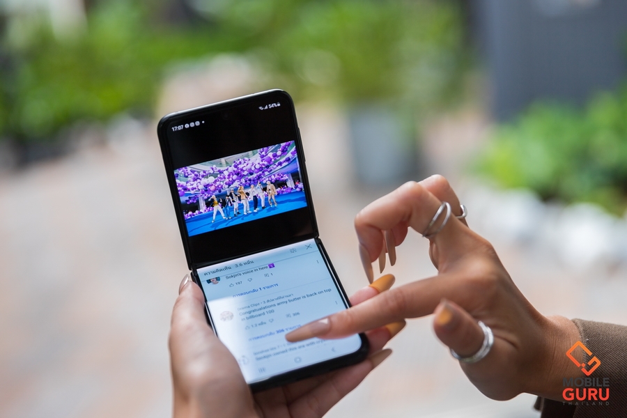 ดูคลิปวิดีโอได้เต็มตา (แต่ด้วยอัตราส่วนหน้าจอที่ยาวแต่แคบ มีความยาวหน้าจอเท่า Galaxy Note 20 Ultra เลยครับ แต่แคบกว่าอย่างชัดเจน ทำให้ภาพเมื่อขยายเต็มหน้าจอจะโดนตัดออกพอสมควร) และเวลาใช้งานแบบพับหน้าจอ จะช่วยให้จับถนัดมือ และพิมพ์ข้อความโต้ตอบได้สนุกมากขึ้น และด้วยลำโพงคู่ จูนเสียงโดย AKG พร้อมระบบเสียง Dolby Atmos ทำให้ทุกความบันเทิงเต็มอารมณ์มากๆครับ เสียงดังและแน่น คุณภาพลำโพงดีมากเลย