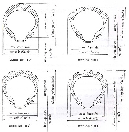 1) ระบบนิ้ว - ส่วนอธิบายขนาดประกอบด้วย ความกว้างภาคตัดของยางนอก และรหัสเส้นผ่านศูนย์กลางขนาดวงล้อ
