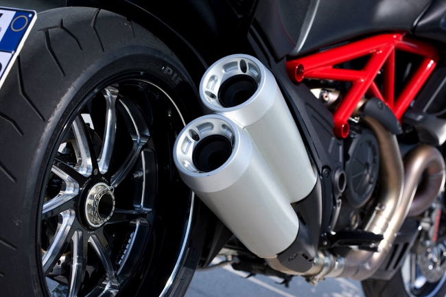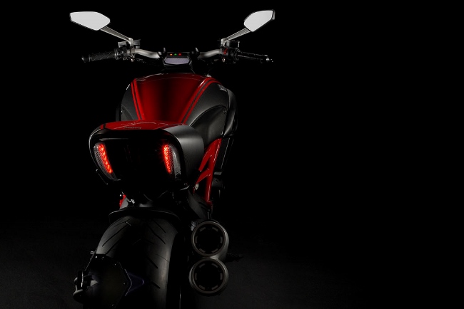 ภาพจาก 15pictures.com จุดเด่นของเจ้า Diavel ที่ชัดเจนก็คือ ไฟหน้าแบบ LED สว่างทันสมัยเป็นเอกลักษณ์เฉพาะตัว และไฟท้าย LED ทรงยาวแบบแนวตั้งคู่ ซึ่งเห็นชัดในระยะไกล ทางด้านข้างโดดเด่นด้วยโครงตัวถังแบบเปลือย และฝั่งที่ติดตั้งชุดท่อไอเสียในรูปแบบเฉพาะตัว โค้งงอออกจากเสื้อสูบและรวมออกมาที่ส่วนปลายท่อแบบคู่ทางด้านขวาในแบบ 2-1-2 ช่วยให้ถ่ายเทอากาศได้ไหลลื่นยิ่งขึ้น