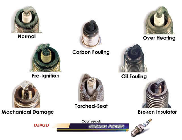 ภาพหัวเทียนที่ชำรุดจากหลายสาเหตุ