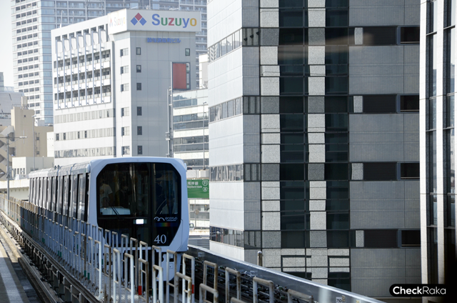 แค่ข้ามฝั่งจากสถานีชิมบาชิของรถไฟ JR ก็มาขึ้นโมโนเรลสายยูริกาโมเมะที่สถานีชิมบาชิ