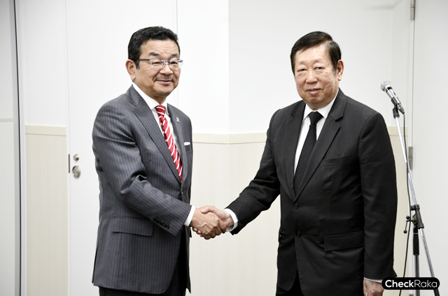 (จากซ้ายไปขวา) มร. โนริอะ อาเบะ , มร. ทาคาฮิโระ ฮาจิโกะ และ มร. โยอิจิ มิซึทานิ