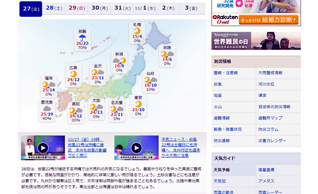 weather.yahoo.co.jp ซึ่งการพยากรณ์อากาศของกรมอุตุนิยมของญี่ปุ่นนั้นค่อนข้างเชื่อถือได้ แต่ก่อนที่จะออกเดินทางไม่กี่วันก็มีข่าวพายุไต้ฝุ่นหมายเลข 21 หรือ พายุ Lan กำลังค่อยๆ เคลื่อนตัวเข้าสู่ประเทศญีปุ่นในช่วงที่จะต้องเดินทางไปพอดี จากจะต้องเตรียมแค่เสื้อกันหนาว กลายเป็นต้องเตรียมเสื้อกันฝนไปด้วย แต่ยังไงซะ "เหลือดีกว่าขาด" ก็จัดไปแบบพร้อมๆ แทบไม่มีคำว่า "ไม่พอซื้อใหม่" ที่นั่นกันเลยทีเดียว