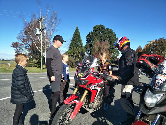 ฮอนด้า แอฟริกา ทวิน โดดเด่น จนครอบครัวนี้ต้องเดินเข้ามาดูและให้เด็กๆ ลองคร่อมกันเลย