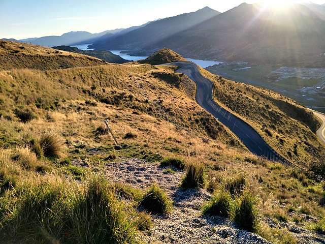 แม้ว่าอยากเลี่ยงหาทางดีๆ แต่ดูจะไม่มีทางอื่นนอกจาก ลุย ! หลังออกจาก เนวิส โร้ด ขบวนฯ มาพักจิบกาแฟก่อนมุ่งหน้าไป Queentown แต่สเตจสุดท้ายคือ การขี่เลียบถนนทะเลสาบอันคดเคี้ยวและไต่ขึ้นเขาไปหาความหนาวที่สกีรีสอร์ตเป็นบทพิสูจน์ส่งท้ายของวัน เพราะถุงมือและรองเท้าที่เปียกจากน้ำลำธารมาเจอกับความเย็นบนทางเขาทำให้ทรมานอยู่ไม่น้อย เราขึ้นไปชมวิวสวยก่อนพระอาทิตย์ลับฟ้า จากนั้นจึงมุ่งหน้าไปที่พักใน Queentown พักร่างกันก่อนไปลุย Mt.COOK ในวันต่อไป