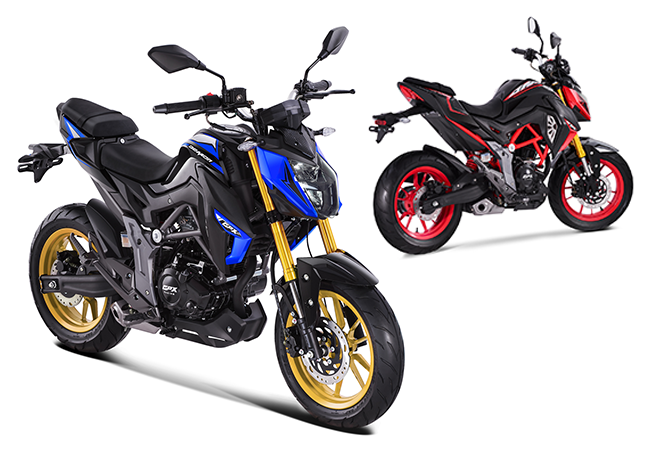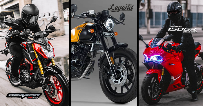 GPX Demon 150 GR Luxury เครื่องยนต์ 150 ซีซี 4 จังหวะ แบบ 6 สปีด ระบบกันสะเทือนล้อหน้า UP SIDE DOWN, ล้อหลัง MONO SPRING มีดิสก์เบรกหน้า-หลัง ซ่อนท่อเก็บไว้ช่วงล่าง ทั้งคันมีน้ำหนักตัว 130 กก. และราคาอยู่ที่ 63,800 บาท เท่านั้น
