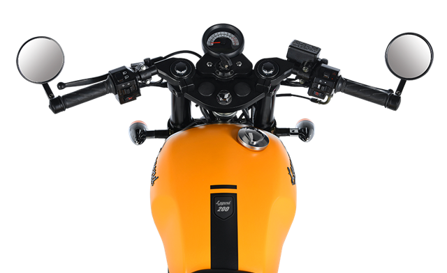 แฮนด์จับโช๊คแบบฉบับสาย Cafe Racer เอกลักษณ์ความคลาสสิคในตำนาน กระชับมือ ควบคุมง่าย ช่วยเพิ่มประสิทธิภาพความลู่ลมในขณะขับขี่ด้วยท่าหมอบ