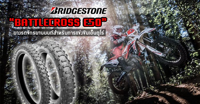 บริดจสโตนเปิดตัวยางรถจักรยานยนต์ BATTLECROSS E50 ด้วยยางหน้าหนึ่งขนาด และยางหลังสองขนาดที่ประเทศสหรัฐอเมริกาและแคนาดาเมื่อเดือนมกราคม ที่ผ่านมา ซึ่งเป็นยางรถจักรยานยนต์ "BATTLECROSS E50" สำหรับการแข่งขันเอ็นดูโร่ และจะเปิดตัวที่ภูมิภาคอื่นๆ ในเดือนกุมภาพันธ์ปีนี้*1 ซึ่งยางรถจักรยานยนต์ BATTLECROSS E50 ได้รับการรับรองมาตรฐาน DOT*2 และเป็นไปตามข้อบังคับของ FIM*3