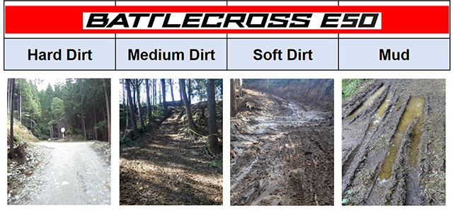 ด้วยการยกระดับประสบการณ์และเทคโนโลยีที่เหนือชั้นกว่าของการพัฒนายางออฟโรด ยางรถจักรยานยนต์ BATTLECROSS E50 จากบริดจสโตนได้รับการออกแบบมาเพื่อให้เกิดแรงกรุยสูง และมีสมรรถนะในการเข้าโค้งบนพื้นผิวถนนที่หลากหลาย ซึ่งจำเป็นสำหรับการแข่งขันเอ็นดูโร่ โดยใช้เทคโนโลยี Castle Block ซึ่งเป็นเอกสิทธิ์เฉพาะของบริดจสโตนเพื่อให้มั่นใจในการยึดเกาะถนนอย่างสูงสุดแม้บนพื้นถนนลื่น ขอบยางพิเศษที่เรียกว่าบังเกอร์ซึ่งอยู่ที่ฐานของบล็อกดอกยางช่วยให้ยางรถจักรยานยนต์ BATTLECROSS E50 เกิดแรงกรุยได้ดีบนสภาพพื้นผิวที่เป็นดินหรืออ่อนนุ่ม บริดจสโตนยังใช้การจำลองสามมิติเพื่อปรับรูปร่าง และตำแหน่งของบล็อกดอกยางเพื่อทำให้สมรรถนะในการเข้าโค้งของยางล้อหน้าดีขึ้น และเพิ่มสมรรถนะแรงกรุยในยางล้อหลัง