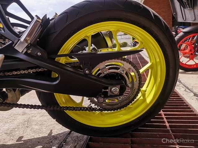 ระบบกันสะเทือนหน้าโช๊คอัพหัวกลับสีทอง โช๊คหลังเดียวแบบโมโนครอส ทำงานควบคู่กับดิสก์เบรกหน้า-หลัง เสริมลุคให้บึก ด้วยยางล้อหลัง 140 มม. สวิงอาร์มอะลูมิเนียมแบบไดแคส เบาแต่แข็งแรง คล่องตัวทุกโค้ง และยังมาพร้อมระบบ Assist & Slipper Clutch ช่วยลดแรงกระชากของล้อหลังขณะลดเกียร์เพิ่มความมั่นใจในทุกการขับขี่ สนุกได้ไม่มียั้งตามแบบฉบับ MT Series เอกลักษณ์ของสายดาร์ค ตัวจริง MT-15 ราคาเริ่มต้น 98,500 บาท