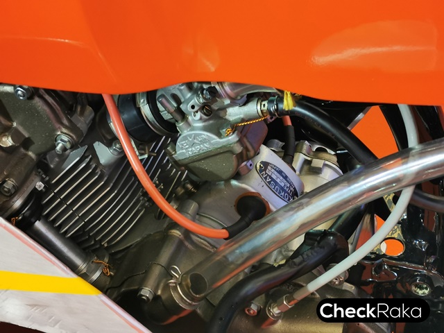 ติดตั้งเครื่องยนต์แบบ 2 สูบเรียง 4 จังหวะ เสื้อสูบทำมุมเอียงไปด้านหน้า 35 องศา ระบายความร้อนด้วยอากาศ 125 ซีซี ล้ำหน้าด้วยเทคโนโลยี DOHC ซึ่งสมัยนั้นนับว่าล้ำหน้าสุดๆ จ่ายน้ำมันด้วยคาร์บูเรเตอร์ Keihin ให้กำลังสูงสุด 22 แรงม้า ที่ 14,000 รอบต่อนาที เกียร์ 6 จังหวะ ท่อคู่ มีน้ำหนักตัวเพียง 93 กิโลกรัมเท่านั้น