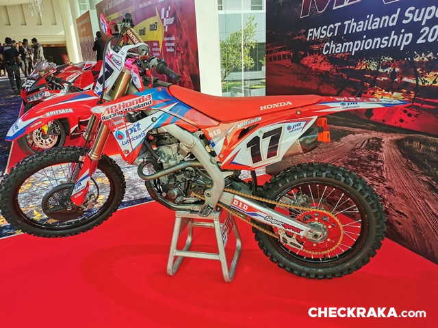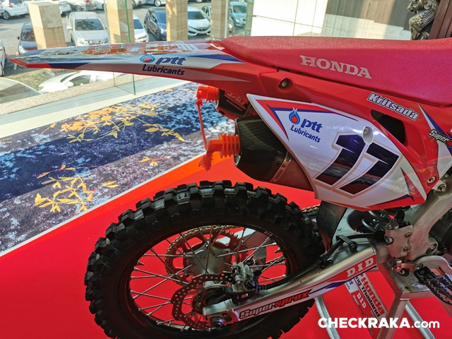 สำหรับ CRF250R คันนี้เป็นรถแข่ง ในส่วนอุปกรณ์เดิมๆ ติดรถ CRF250R นั้นก็นับว่าเยอะและครบถ้วนแล้ว แต่สำหรับการแข่งขันนั้น อาจต้องมีเพิ่มเติมกันบ้าง อย่างรถคันนี้เป็นของนักแข่งระดับประเทศไทยรายการ FMSCT Thailand Supercross "แซ้งค์-กฤษดา จำรูญจารีต" เบอร์17 ของทีม Honda IRC DID เตชะมาครอสเซอร์กิต อนันต์ยนต์ ที่เพิ่มอุปกรณ์เพื่อช่วยในการขับขี่ที่ดีขึ้น