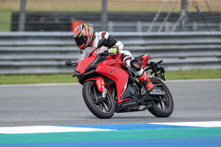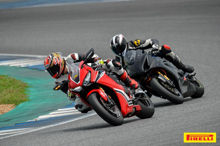 CBR250RR หนึ่งเซสชั่น ในส่วนของคลาสพันซีซี ปรับค่าไว้ที่ P2 T1 ตัวรถและยางสเปคใหม่ให้การขี่ที่สนุก ให้ความมั่นใจตามรอบที่ขี่มากขึ้นเรื่อยๆ ยางให้การยึดเกาะและตอบกลับความรู้สึกได้ดี พลิกต่อโค้งได้อย่างไหลลื่น ไม่มีอาการใดๆ ให้กังวลแม้แต่น้อย ต่อด้วยรุ่นเล็กคลาส 250 ซีซี ที่ต้องใช้กำลังเต็มที่ในการขี่บนแทร็คสนามช้างฯ พร้อมปรับโหมดสปอร์ต+ ด้วยความที่เป็นสปอร์ตไบค์น้ำหนักเบา ขี่ง่ายทั้งบนถนนและในสนาม เมื่อได้ยางสลิคจากพีเรลลี่ ทำให้ขี่ได้สนุกมากขึ้นเมื่อเทียบกับที่เคยขี่ตอนเทสในสนามครั้งแรก นับเป็นรุ่นรถที่จับคู่ยางดีในงบประมาณที่ย่อมเยาสำหรับการขี่แทร็คเดย์แบบประหยัด และยังคงให้อรรถรสการขี่สนามได้อย่างน่าพอใจ