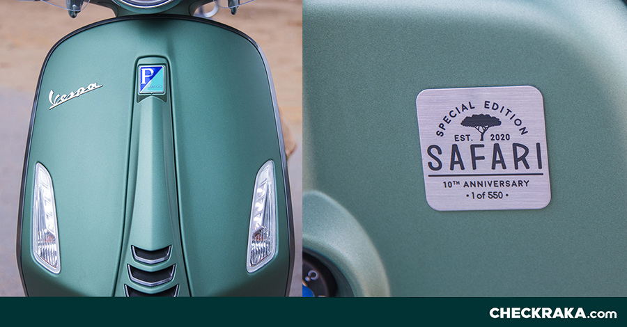 เพื่อฉลองครบรอบ 10 ปี เวสป้า ประเทศไทย เลยจัดสีเขียวด้าน เนื้อแมท ดูเรียบหรูให้เหมาะกับสีของธรรมชาติ พร้อมตกแต่งในส่วนดีเทลอื่นๆ ด้วยสีโครเมี่ยมแบบ Dust Grey ให้ดูสปอร์ต คมเข้ม คงอารมณ์กลิ่นอายสายลุย ขี่บนถนนจะสะดุดตานิดๆ