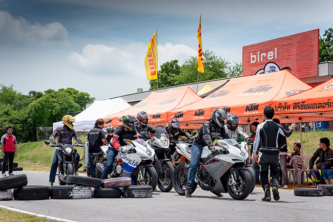 MV Agusta จากประเทศอิตาลี กันอย่างคึกคัก โดยบริษัท คุณค่า คอร์ปอเรชั่น จำกัด ผู้นำเข้าและตัวแทนจำหน่ายรถจักรยานยนต์ระดับพรีเมี่ยมแบรนด์จากยุโรป ร่วมกับคุณกฎ ทรงเจียระพานิช ผู้บริหารบริษัท ศิริชัยมอเตอร์เซลส์ จำกัด จ.ลพบุรี จัดขึ้นเพื่อให้ลูกค้ากลุ่มเป้าหมายได้ทดสอบความแรงและสมรรถนะสุดเจ๋ง ทุกรุ่นอย่างจุใจกับแบรนด์ KTM และ MV Agusta พร้อมเป็นการขยายฐานลูกค้าเพิ่ม ณ สนามสระบุรี อินเตอร์เนชั่นแนล เซอร์กิต ในวันที่ 20-21 กันยายน ที่ผ่านมา