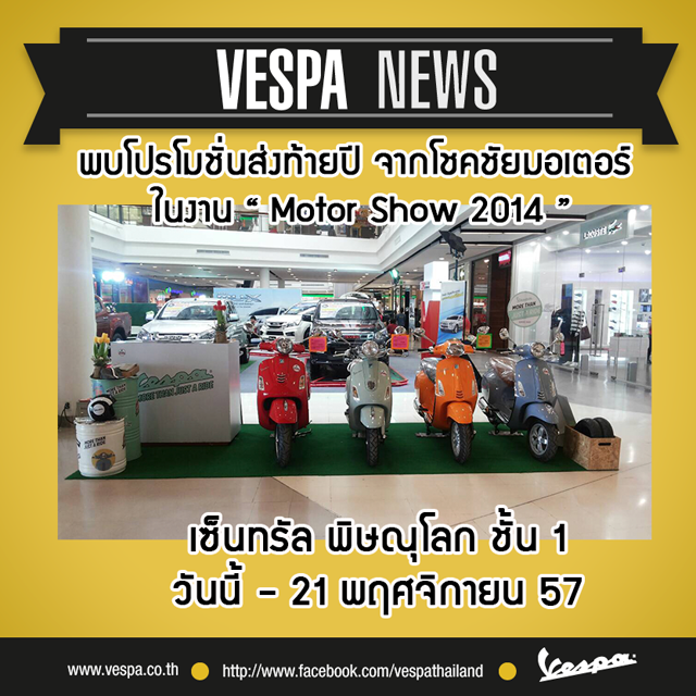 โปรโมชั่นส่งท้ายปีจากเวสป้า โชคชัยมอเตอร์ในงาน Motor Show 2014 วันนี้ - 21 พ.ย.57 ที่เซ็นทรัล พิษณุโลก