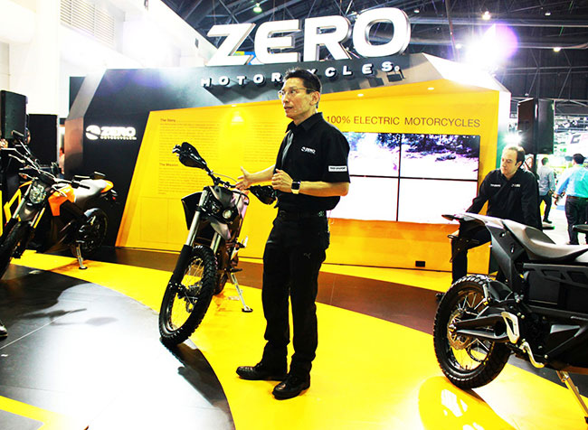 Zero Motorcycles เป็นรถมอเตอร์ไซค์ไฟฟ้าสมรรถนะสูงที่มียอดจำหน่ายมากที่สุดในโลก เนื่องจากเป็นรถที่เปี่ยมด้วยประสิทธิภาพ เร้าใจทุกการขับขี่ และปราศจากมลพิษ ทำให้ได้รับความนิยมเป็นอย่างมาก โดยในงาน Thailand International Motor Expo 2014 ได้นำ Zero Motorcycles มาอวดโฉม และจำหน่ายรวมทั้งสิ้น 5 รุ่นด้วยกัน ได้แก่ รุ่น SR, รุ่น S, รุ่น DS, รุ่น FX และ รุ่น MMX