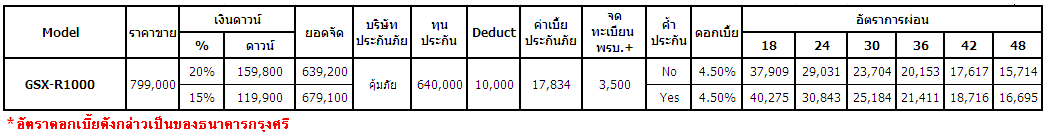 ซูซูกิ เผยตารางราคาผ่อน-ดาวน์บิ๊กไบค์
