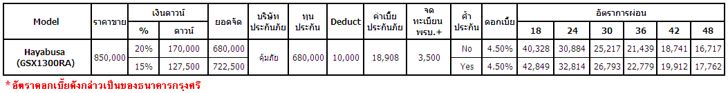 21 ม.ค. 58 49,113ซูซูกิ เผยตารางผ่อน-ดาวน์บิ๊กไบค์