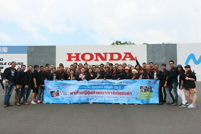 เอ.พี.ฮอนด้า ผู้จัดจำหน่ายรถจักรยานยนต์ฮอนด้าในประเทศไทย พาผู้โชคดี 100 ท่าน จากแคมเปญ "ฉลองฮอนด้า 50 ปีในประเทศไทย" ผ่านกิจกรรมค้นหารถมอเตอร์ไซค์เก่าแต่เก๋า และกิจกรรมประกวดภาพความประทับใจที่มีต่อสัญลักษณ์ปีกนกของฮอนด้า เดินทางสู่ประเทศญี่ปุ่น เพื่อเยี่ยมชมและสัมผัสความยิ่งใหญ่ของอาณาจักรฮอนด้า ที่สนามทวินริงโมเตกิ และฮอนด้าคอลเล็กชั่นฮอลล์ โดยมีคณะผู้บริหารนำโดย คุณสุชาติ อรุณแสงโรจน์ กรรมการบริหาร บริษัท เอ.พี.ฮอนด้า นำทริปสุดเอ็กซ์คลูซีฟนี้