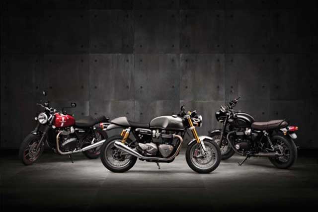 Triumph - ไทรอัมพ์ทั้ง 3 รุ่น Bonneville T120 / T120 Black มาพร้อมเครื่องยนต์ 1,200 ซีซี , Street Twin 900 ซีซีและ Thruxton 1,200 ซีซี ทุกรุ่นมีระบบ เบรก ABS ช่องชาร์จไฟ USB คันเร่งไฟฟ้า ไฮเทคด้วยระบบเลือกโหมดการขับขี่ ไฟหน้า Daylight LED ไฟท้าย LED เป็นต้น
