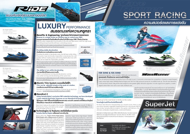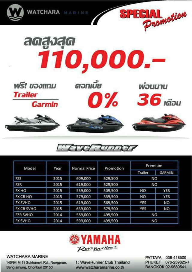 นอกจากนี้ทีมงานยามาฮ่า นำโดยคุณสรวงสุดา มนัสบุญเพิ่มพูล ผู้จัดการทั่วไป ฝ่ายสื่อสารการตลาด และประชาสัมพันธ์ ยังได้เปิดโอกาสให้สื่อมวลชนได้ทดลองขี่ยานยนต์ทางน้ำ ยามาฮ่า WaveRunner ที่บางลำมีความแรงระดับตัวแข่งชิงแชมป์โลก ณ หาดกมลา โดยใช้เวลาทดลองขี่กันอย่างเต็มที่ ทีมงานเช็คราคาฯ รู้สึกประทับใจในสมรรถนะของ WaveRunner เป็นอย่างมาก ด้วยพลังจากเครื่องยนต์ขนาด 1.8 ลิตร ที่พุ่งทะยานแหวกน้ำไปอย่างรวดเร็ว แต่ยังให้การควบคุมที่ดี
