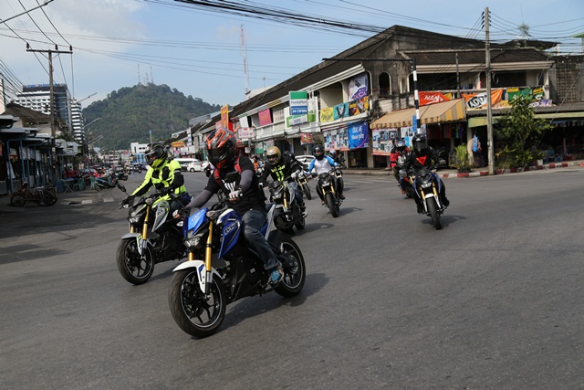 เมื่อปลายปีที่ผ่านมา บริษัท ไทยยามาฮ่ามอเตอร์ จำกัด พาคณะสื่อมวลชนรวมถึงทีมงานเช็คราคา.คอม ร่วมสัมผัสมอเตอร์ไซค์ยามาฮ่า รุ่น M-SLAZ อย่างใกล้ชิด ด้วยการบิดท่องรอบเกาะภูเก็ต เพื่อทดสอบสมรรถนะความแรง ความคล่องตัว และแสดงให้เห็นถึงรูปลักษณ์สไตล์ Naked Bike อันสปอร์ตโฉบเฉี่ยว โดยขี่กันเป็นกลุ่มไปตามเส้นทางภายในตัวเมืองเป็นส่วนใหญ่ เน้นถนนสายสำคัญหลายแห่ง นอกจากนี้ยังแวะชมบรรยากาศสถานที่ท่องเที่ยวและพักผ่อนต่างๆ เช่น เขารัง ฯลฯ และหลายครั้งที่จอด M-SLAZ มักได้รับความสนใจจากผู้พบเห็น จนบางคนอดใจไม่ไหว เข้ามาขอบันทึกภาพร่วมกับรถและสอบถามรายละเอียด แสดงให้เห็นถึงกระแสตอบรับอันยอดเยี่ยมของยามาฮ่า M-SLAZ