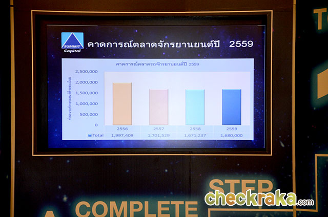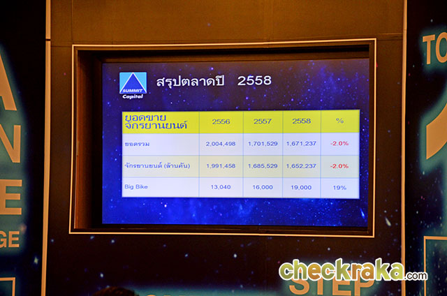 นายวิชิต พยุหนาวีชัย ประธานเจ้าหน้าที่บริหาร บริษัท ซัมมิท แคปปิตอล ลีสซิ่ง จำกัด เปิดเผยว่า ปี 2558 ที่ผ่านมา ภาวะเศรษฐกิจโดยรวมของประเทศไม่สู้ดีนัก การใช้จ่ายภาคครัวเรือนขยายตัวเพียงร้อยละ 1.7 ส่งผลให้ปริมาณการจําหน่ายรถยนต์นั่งและรถจักรยานยนต์ปรับตัวลดลงอย่างต่อเนื่อง โดยยอดรถจักรยานยนต์ที่จดทะเบียนในปีที่ผ่านมา ติดลบ 2% เมื่อเทียบกับปี 2557 และคาดการณ์ว่าในปี 2559 จะเติบโตน้อยกว่าร้อยละ 1 ในทางกลับกันนั้น ทางซัมมิท แคปปิตอล กลับเติบโตสวนกระแสโดยมียอดปล่อยสินเชื่อรถจักรยานยนต์เพิ่มขึ้นจากปี 2557 ถึงร้อยละ 37 ซึ่งแบ่งเป็นกรุงเทพฯ และปริมณฑล ร้อยละ 45 รองลงมาคือภาคตะวันออก ร้อยละ 40 สุดท้ายคือภาคตะวันออกเฉียงเหนือ และภาคใต้ รวมร้อยละ 15
