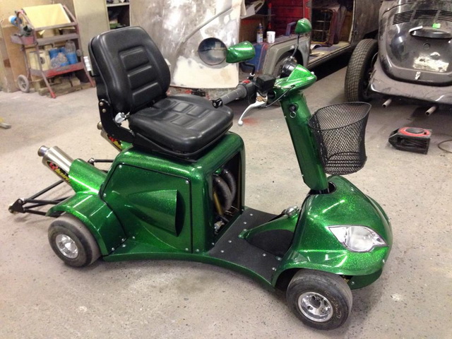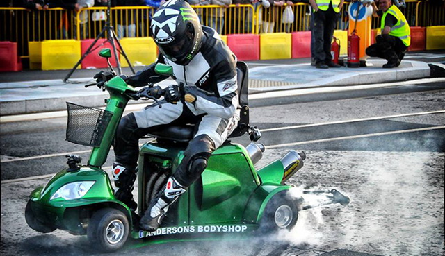 มร. เดวิด แอนเดอร์สัน และ มร. แมทธิว ไฮน์ 2 หนุ่ม จาก ANDERSONS BODYSHOP ร่วมกันทำโปรเจคความเร็วสุดแปลกแต่เร้าใจ ด้วยการดัดแปลงรถสกู๊ตเตอร์ตัดหญ้าให้แรงแบบตัวแข่งแดร็ก โดยนำรถสกู๊ตเตอร์ตัดหญ้าที่เดิมออกแบบให้วิ่งได้เร็วสุดเพียง 12.87 กม./ชม. ด้วยพื้นฐานเครื่องยนต์ซูซูกิ 4 สูบ 80 แรงม้า ระบายความร้อนด้วยน้ำมาใช้ เนื่องจากเฟรมและยางค่อนข้างแย่ จึงมีการออกแบบเฟรมใหม่ พร้อมติดตั้งล้อ-ยางของรถโกคาร์ท และเพิ่มแฟร์ริ่งสวยๆ ให้ดูดี จนไม่เหลือเค้าโครงรถสกู๊ตเตอร์ตัดหญ้าเก่าๆ และพร้อมวิ่งทำสถิติโลก