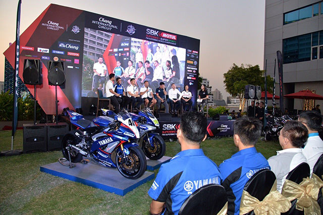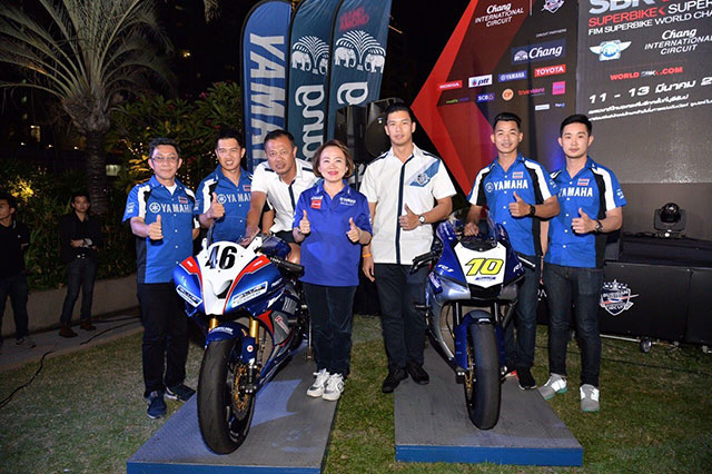 นางสาวจินตนา อุดมทรัพย์ (คนกลาง) ผู้จัดการใหญ่ด้านการค้า และนายธีรพงษ์ โอภาสกรกุล (คนซ้าย) ผู้จัดการทั่วไปอาวุโส สนันสนุนการขาย และการตลาดบริษัท ไทยยามาฮ่ามอเตอร์ จำกัด พร้อมด้วยนายเนวิน ชิดชอบ ประธานบริษัท บุรีรัมย์ ยูไนเต็ด อินเตอร์เนชั่นแนล เซอร์กิต จำกัด และนายตนัยศิริ ชาญวิทยารมณ์ กรรมการผู้อำนวยการ บริษัท บุรีรัมย์ ยูไนเต็ด อินเตอร์เนชั่นแนล เซอร์กิต จำกัด ประกาศความพร้อมในการแถลงข่าวการแข่งขันรายการระดับโลก FIM World Superbike Championship Round 2 ณ สนาม ช้าง อินเตอร์เนชั่นแนล เซอร์กิต จ.บุรีรัมย์ ระหว่างวันที่ 11-13 มีนาคม 2559 โดยได้ส่ง 2 นักแข่งลงชิงชัย เจ้าความเร็วในการแข่งขันระดับโลก