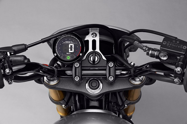 Honda CB1100 Custom Concept เน้นโทนสีดำเข้ม บอกถึงความดุดัน แบบดิบๆ เห็นโครงเหล็กของตัวถัง แสดงถึงความแข็งแกร่งและใส่ชุดแต่งพิเศษของฮอนด้า โดยเฉพาะเพื่อเพิ่มสมรรถนะและความสวยงาม เช่น กระจกข้างทรงกลม, ท่อไอเสีย Moriwaki