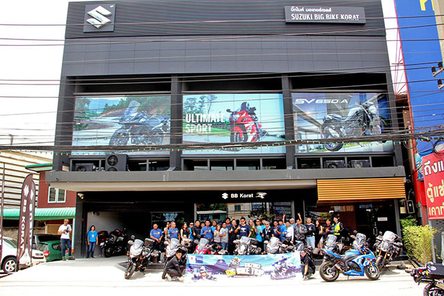 ทริปบิ๊กไบค์ 3 วัน 2 คืน สุดมันในครั้งนี้เริ่มต้นออกเดินทางจาก บริษัท ไทยซูซูกิมอเตอร์ จำกัด ตั้งแต่เช้าตรู่มุ่งหน้าสู่โคราช และแวะพักพร้อมทักทายกับตัวแทนจำหน่ายรถจักรยานยนต์ซูซูกิ บิ๊กไบค์ แบบครบวงจร ภายใต้มาตรฐาน 3S นั่นคือ Sales, Spare Parts และ Service ที่ใหญ่ที่สุดในพื้นที่จังหวัดนครราชสีมา โดยได้รับเกียรติจากคุณฐานุพงศ์ ปิยะภิรมย์วุฒิ กรรมการผู้จัดการ บริษัท บิ๊กไบค์ มอเตอร์เซลส์ จำกัด หรือ บีบี โคราช ซึ่งให้การต้อนรับอย่างเป็นกันเอง