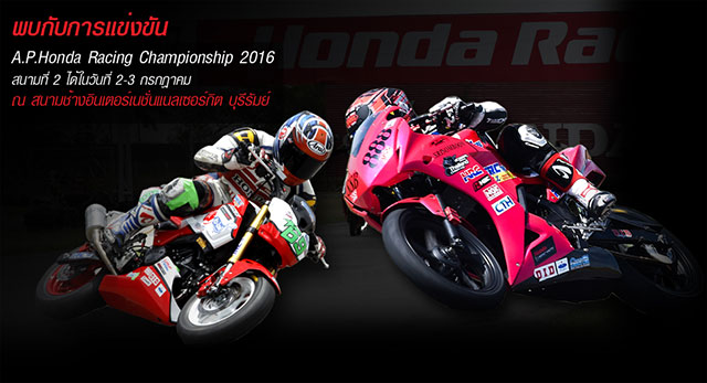 เดินทางมาถึงสนามที่สองกันแล้วสำหรับการแข่งขัน "เอ.พี. ฮอนด้า เรซซิ่ง แชมเปี้ยนชิพ ฤดูกาล 2016" เวทีสานฝันให้กับนักบิดหน้าใหม่ที่ใฝ่ฝันอยากสัมผัสประสบการณ์เป็นนักแข่งมืออาชีพ แต่ไม่มีสนามให้ลงแข่งขัน โดยจะเกิดขึ้นในวันที่ 2-3 กรกฎาคม นี้ ณ สนามช้าง อินเตอร์เนชันแนล เซอร์กิต จ.บุรีรัมย์ งานนี้นอกจากการชิงชัยรุ่น TDC และ MSX125SF Super Challenge แล้ว เอ.พี. ฮอนด้า ยังได้เพิ่มรุ่นใหม่ขึ้นมาอย่าง โมโต 3 ไทยแลนด์ ทาเลนท์ คัพ เฟ้นหานักบิดดาวรุ่งฝีมือดีขึ้นมาประดับวงการมอเตอร์สปอร์ตของไทย