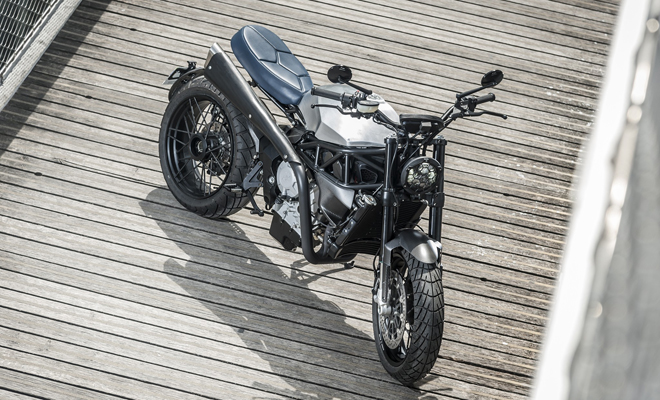แทงค์น้ำมันอลูมิเนียมไร้รอยต่อจาก Crazy Racers ซึ่งสามารถเลือกสีหรือต้องการให้เพนท์เป็นลวดลายก็ได้ ระบบไฟ LED ท่อไอเสีย scrambler-esque เคลือบด้วยเซรามิก สำหรับชุดโช้กคู่หน้า เลือกได้ระหว่างแบรนด์ Marzocchi หรือ Ohlins Black Edition ระบบเบรกพิเศษขึ้นอีกขั้นด้วย Aerotec caliper จาก Beringer, ล้อจาก Borrani หุ้มด้วยยาง Avon TrailRider
