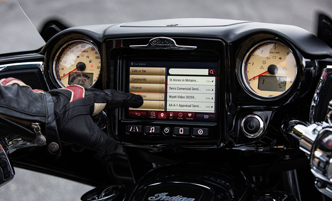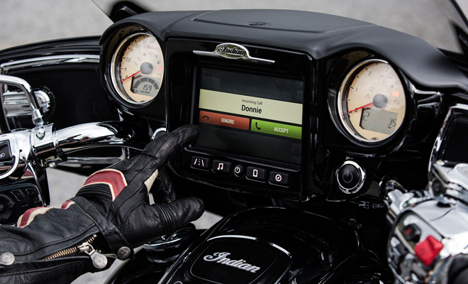 Indian Motorcycle แนะนำอุปกรณ์พร้อมระบบใหม่ 'Ride Command' สามารถติดตั้งในมอเตอร์ไซค์ 2 รุ่น คือ Indian Chieftain และ Roadmaster โดยมีหน้าจอทัชสกรีนกว้าง 7 นิ้ว สามารถกดแม้สวมถุงมือได้ ซึ่งรวมฟังก์ชั่นฟังเพลง ปุ่มปรับแสงไฟ แผนที่ นาฬิกา อุณหภูมิ ข้อมูลเกี่ยวกับพาหนะ เข้าไว้ด้วยกัน โดยเชื่อมต่อกับสมาร์ทโฟน และไอพอดผ่านสัญญาณบลูทูธ สามารถเตือนเมื่อมีโทรศัพท์และข้อความเข้า รวมถึงโทรออกผ่านทัชสกรีนของระบบ Ride Command ได้ทันที