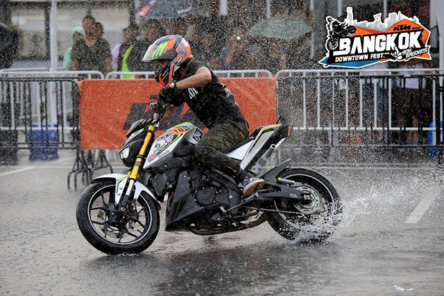 เมื่อวันที่ 17 กันยายน 2559 ที่ผ่านมา บริษัท เบิร์นรับเบอร์ จำกัด ผู้นำเข้าและจัดจำหน่ายมอเตอร์ไซค์สัญชาติออสเตรียแบรนด์ "เคทีเอ็ม" แต่เพียงผู้เดียวในประเทศไทย จัดงาน KTM presents Bangkok Downtown Fest. with Rok Bagoros โดยได้ ร็อค บาโกรอส (Rok Bagoros) สตั๊นท์ไรเดอร์ระดับโลกจากสโลวีเนีย โชว์ขี่มอเตอร์ไซค์ผาดโผนและถ่ายทอดเทคนิคเพื่อสร้างแรงบันดาลใจให้แก่เหล่าสตั๊นท์ไรเดอร์และผู้ที่หลงใหลในการขี่มอเตอร์ไซค์ผาดโผนในประเทศไทย โดยเป็นการเยือนเมืองไทยครั้งแรกของร็อคเพื่อให้แฟนๆ ได้สัมผัสอย่างใกล้ชิด และมีโอกาสได้ชมโชว์การขี่มอเตอร์ไซค์ผาดโผนในสไตล์ที่ผสมผสานทั้งความดุดัน แข็งแกร่ง และทรงพลังอันเป็นเอกลักษณ์ ภายใต้ท่วงท่าอันงดงามเหมือนกับจังหวะดนตรีสไตล์ร็อคแอนด์โรล โดยวาดลวดลายบนเคทีเอ็ม 200 ดู๊ค ที่ให้ความคล่องตัวและปราดเปรียวด้วยน้ำหนักรถที่เบาเมื่อเทียบกับสมรรถนะอันยอดเยี่ยมของเครื่องยนต์ รวมถึงเพิ่มความสนุกระหว่างการขับขี่