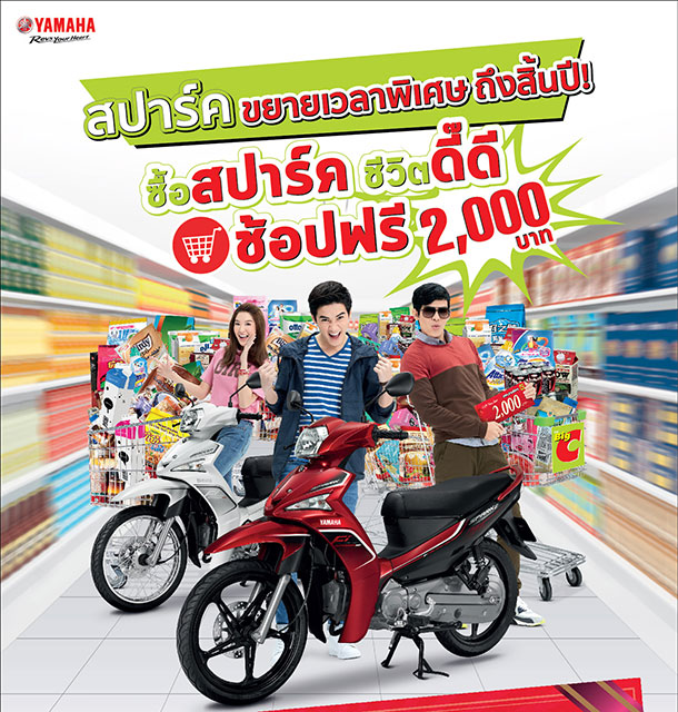 ซื้อ Yamaha Spark ทุกรุ่นวันนี้... ชีวิตดี๊ดี รับฟรี 2 เด้ง ช้อปฟรี 2,000 บาท + ชุดบำรุงรักษา 2 ปี ถึงสิ้นปี!