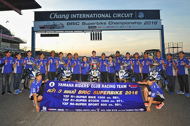 การแข่งขัน BRIC Superbike Championship 2016 2016 นัดปิดฤดูกาล เมื่อวันอาทิตย์ที่ 20 พฤศจิกายน ที่ผ่านมา ทีมแข่ง ยามาฮ่า ไรเดอร์สคลับ เรซซิ่งทีม คว้าแชมป์ในเกมนัดปิดฤดูกาล 3 รุ่น ไฮไลท์ของรายการ เริ่มที่รุ่น SuperBike 1000 cc. SB1 และรุ่น SuperStock 1000 cc. ST1 คว้าแชมป์ประจำปีของรายการ พร้อมสิทธิ์ไวลด์การ์ดร่วมเกมเวิลด์ซูเปอร์ไบค์ (WSBK) ฤดูกาล 2017 ตอกย้ำความแรงของรถแข่ง ยามาฮ่า YZF-R1 และตอกย้ำความแรงของ ยามาฮ่า YZF-R6 ด้วยการคว้าแชมป์ประจำรายการรุ่น SuperSport 600 cc. SS1 พร้อมสิทธิ์ไวลด์การ์ดในการแข่งขัน FIM Asia Road Race Championship 2016 (ARRC) ฤดูกาล 2017 ด้วยเช่นกัน รวมแล้วทัพนักบิดยามาฮ่า คว้าแชมป์รายการด้วยกัน 3 รุ่น พร้อม 3 สิทธิ์ไวลด์การ์ดในเกมระดับโลก และระดับเอเชีย