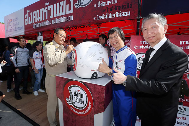 "การรณรงค์และดำเนินกิจกรรมในเปิดโครงการรณรงค์ลดอุบัติเหตุทางถนนในช่วงเทศกาลปีใหม่นี้ เราทำอย่างครบวงจร อันดับแรกคือมุ่งสร้างจิตสำนึกให้พร้อม ผ่านแคมเปญ "สังคมหัวแข็ง" สร้างจิตสำนึกให้คนไทยหันมาใส่หมวกกันน็อกจนเป็นนิสัยเมื่อใช้รถจักรยานยนต์ ต่อมาคือการเตรียมรถให้พร้อมและปลอดภัยในการขับขี่ผ่านการให้บริการตรวจเช็ครถจักรยานยนต์ฟรี และสุดท้ายคือการทำให้คนพร้อมต่อการขับขี่ยานพาหนะ โดยเราได้ตั้งจุด Honda Rest Station บนเส้นทางถนนมิตรภาพเพื่อเป็นจุดแวะพักให้แก่ผู้ขับขี่ ซึ่งเราได้จัดเตรียมจุดบริการซ่อมบำรุงรถจักรยานยนต์ บริการนวดผ่อนคลาย จุดชาร์จแบตเตอรี่มือถือ รวมถึงเครื่องดื่มและของว่างต่างๆ ไว้คอยบริการ รวมทั้งยังให้บริการจำหน่ายหมวกกันน็อคราคาพิเศษ โดยรายได้จากการจำหน่ายทั้งหมดจะมอบให้กับมูลนิธิเมาไม่ขับ"