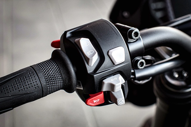 ด้านค็อกพิทหน้า ติดตั้งจอแสดงผลขนาด 5 นิ้ว แบบ TFT LCD เหมือนกันทั้งรุ่น R และ RS ส่วนการเลือกดูข้อมูลและโหมดต่างๆ บนจอทำได้ผ่านจอยสติ๊ก 5 ทิศทางบนแฮนด์ด้านซ้าย