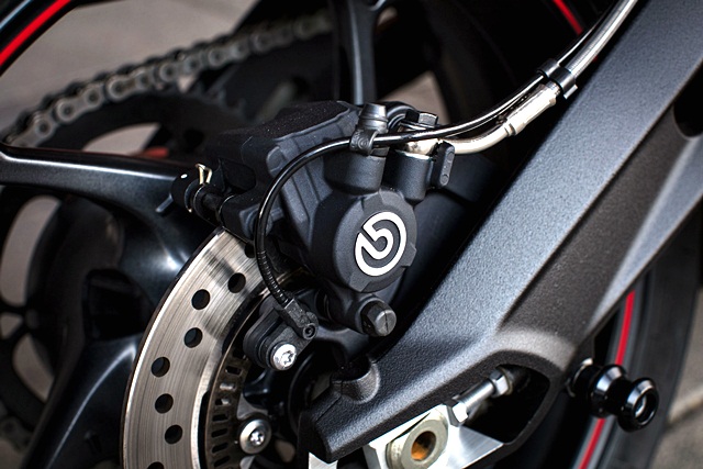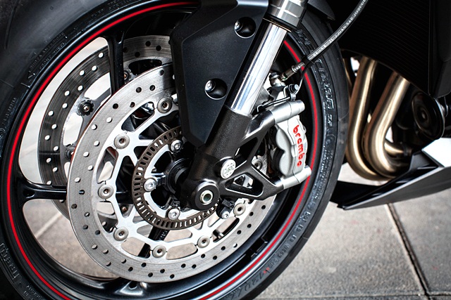 ระบบเบรกในรุ่น R และ RS เป็นยี่ห้อพรีเมียมอย่าง BREMBO ทั้งด้านหน้าและหลัง ส่วนรุ่นพื้นฐานอย่าง S เป็นยี่ห้อ NISSIN สำหรับรุ่น R เป็น BREMBO 4.32 ส่วน RS ได้ดีสุดๆ อย่าง M50 คาลิปเปอร์ Monobloc สำหรับขนาดใบจานดิสก์ด้านหน้า 310 มม. หลัง 220 มม.