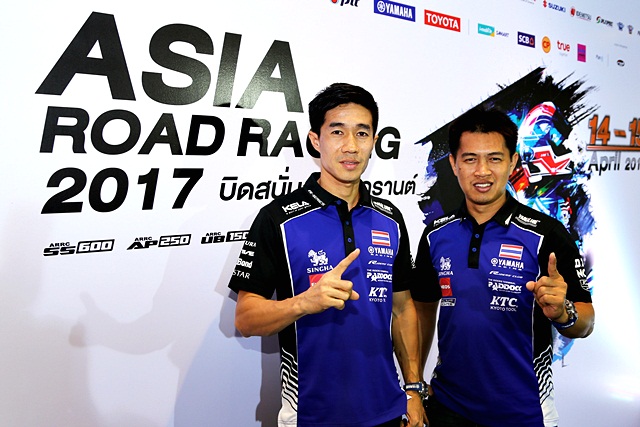 คุณจินตนา อุดมทรัพย์ ผู้จัดการใหญ่ด้านการค้า และผู้บริหารระดับสูง บริษัท ไทยยามาฮ่ามอเตอร์ จำกัด พร้อมด้วยนักแข่งสังกัด YAMAHA THAILAND RACING TEAM นำโดย เดชา ไกรศาสตร์ #24, เฉลิมพล ผลไม้ #65 2 แชมป์เก่า ประกาศพร้อมลงทำการแข่งขันในรุ่น SuperSport 600 cc และรุ่น Asia Production 250 cc ซึ่งมี อนุภาพ ซามูล #500, พีระพงศ์ หลุยบุญเป็ง #14 และพีรพงศ์ บุญเลิศ #39 ลงแข่งป้องกันแชมป์ ในงานแถลงข่าว FIM ASIA ROAD RACING CHAMPIONSHIP 2017 สนาม 2 ณ ลาน Promotion Area PM1 ศูนย์การค้า เดอะสตรีท รัชดา โดยได้บันทึกภาพร่วมกับคุณเนวิน ชิดชอบ ประธานที่ปรึกษา สนามช้างอินเตอร์เนชั่นแนลเซอร์กิต และคุณตนัยศิริ ชาญวิทยารมณ์ กรรมการผู้อำนวยการ สนาม บุรีรัมย์ อินเตอร์เนชั่นแนล เซอร์กิต คุณอนุสรณ์ แก้วกังวาล ผู้ว่าราชการจังหวัดบุรีรัมย์ และมร.เคซี ทีโอ ผู้อำนวยการฝ่ายการตลาด บริษัท ทูวิลส์ มอเตอร์ เรซซิ่ง ฝ่ายจัดการแข่งขัน เอเชียโร้ด เรซซิ่ง แชมปเปี้ยนชิพ สำหรับการแข่งรายการ FIM ASIA ROAD RACING CHAMPIONSHIP 2017 สนาม 2 จัดขึ้นที่ สนามช้าง อินเตอร์เนชั่นแนล เซอร์กิต จังหวัดบุรีรัมย์ ระหว่าง 14 - 15 เมษายน 2560 นี้