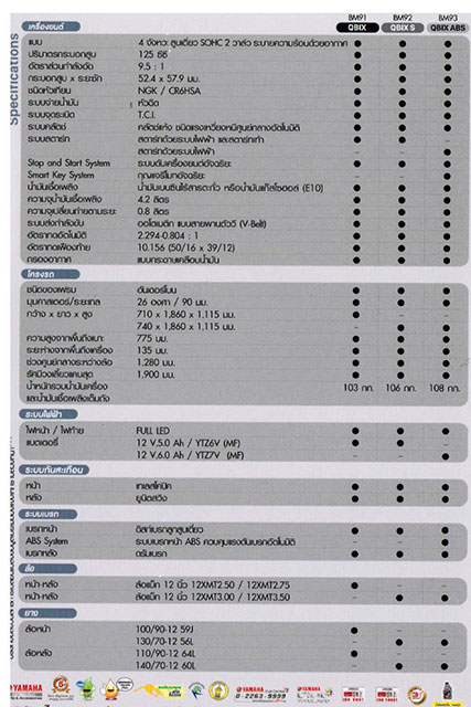 Yamaha QBIX มาพร้อมเทคโนโลยีเครื่องยนต์ BLUE CORE 125 ซีซี ขับขี่สนุกสุดมันส์ เพิ่มประสิทธิภาพการเผาไหม้ ระบายความร้อนได้ดียิ่งขึ้น ลดการสูญเสียกำลัง ช่วยให้สมรรถนะความแรงมาพร้อมกับความประหยัดน้ำมัน และช่วยลดมลพิษ เป็นมิตรกับสิ่งแวดล้อม และฟีเจอร์ที่โดดเด่นเป็นเอกลักษณ์ตั้งแต่การออกแบบ และดีไซน์ให้เป็นรูปทรงสี่เหลี่ยมที่โค้งมน โมเดิร์นกับฟังก์ชั่นสุดสมาร์ท ไฟหน้า และไฟท้าย แบบ FULL LED เรือนไมล์ดิจิตอลดีไซน์สไตล์ GADGET สุดล้ำ แบบ FULL LED พร้อมด้วยช่อง MOBILE CHARGER SOCKET ด้วยช่องต่อชาร์จไฟแบบรถยนต์, Q BOX ใหญ่ จุใจ 22.5 ลิตร, กุญแจรีโมท ANSWER BACK SYSTEM, ระบบ STOP & START SYSTEM* เทคโนโลยีอัจฉริยะช่วยลดอัตราสิ้นเปลืองน้ำมัน พร้อมระบบเบรกแบบ ABS ที่ล้อหน้า* และกุญแจอัจฉริยะ SMART KEY SYSTEM พบกับยามาฮ่า QBIX ได้แล้วที่บูธยามาฮ่าในงาน บางกอก อินเตอร์เนชั่นแนล มอเตอร์โชว์ ครั้ง 38 ระหว่าง วันที่ 29 มีนาคม - 9 เมษายน 2560 ณ อาคารชาเลนเจอร์ ฮอลล์ 1 อิมแพ็ค เมืองทองธานี และร้านผู้จำหน่ายรถจักรยานยนต์ยามาฮ่าทั่วประเทศ *(เฉพาะรุ่น ABS)
