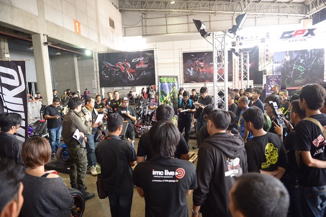 ภายในงานพบกับรถแต่งจากค่าย GPX Racing ที่ขนกันมาแบบครบทีม 5 รุ่น 5 สไตล์ รวมรถแต่งภายในงานทั้งสิ้นจำนวนกว่า 40 คัน ซึ่งผู้เข้าแข่งขันต่างประชันฝีมือกันตามสไตล์ของตัวเอง ผลการประกวดในประเภทสำนักแต่ง รุ่น DEMON 150 GN รางวัลชนะเลิศอันดับหนึ่ง ตกเป็นของ คุณพีระยศ เพชรคง จากสำนักแต่ง 55BIKE ตกแต่งผสมผสานเทคโนโลยีล้ำสมัย กับการใช้ระบบไฮดรอลิกที่สามารถปรับระดับได้ และสามารถใช้งานได้จริง จนโดนใจคณะกรรมการกันไปเต็มๆ
