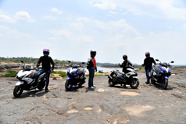 Yamaha Aerox 155 ซึ่งจัดเตรียมไว้ทั้งหมด 4 คัน ออกเดินทางกันช่วงสายๆ จากโชว์รูมกิจตรงยามาฮ่าอุบลราชธานีใกล้อุบลสแควร์ ใช้เส้นทางหมายเลข 2050 มุ่งหน้า สามพันโบก รวมระยะทางไปกลับ 264 กม. รวมเติมน้ำมันเต็มถังทั้งหมด 4 ครั้ง ใช้ความเร็วส่วนใหญ่ 80-100 กม./ชม. และคันของผู้เขียน (หนัก 82 กก.) ทำความเร็วสูงสุดได้ 116 กม./ชม.